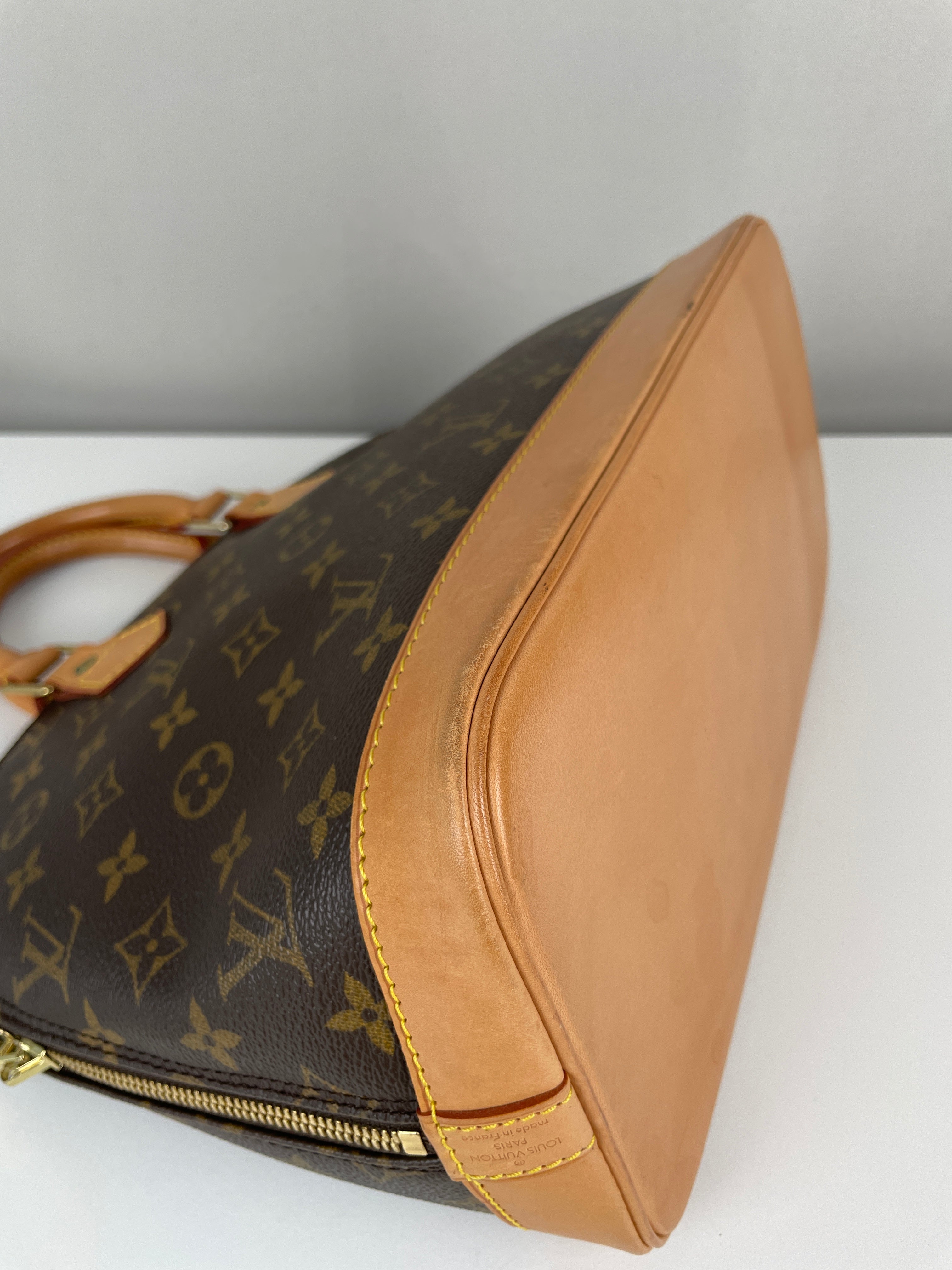 Ce Louis Vuitton Alma PM en toile Monogram est un modèle iconique datant de 1997. Avec sa silhouette structurée, sa fermeture zippée et sa bijouterie dorée, il allie élégance et praticité. Le cuir patiné apporte une touche vintage authentique, idéale pour les passionnés de sacs intemporels Louis Vuitton.