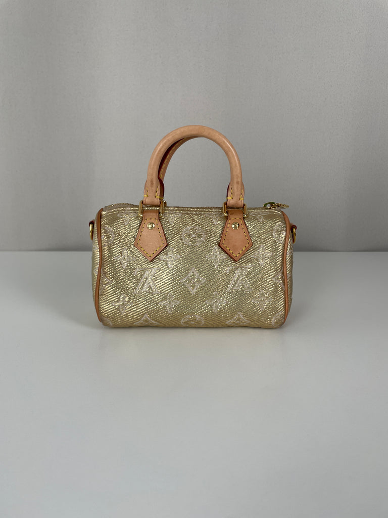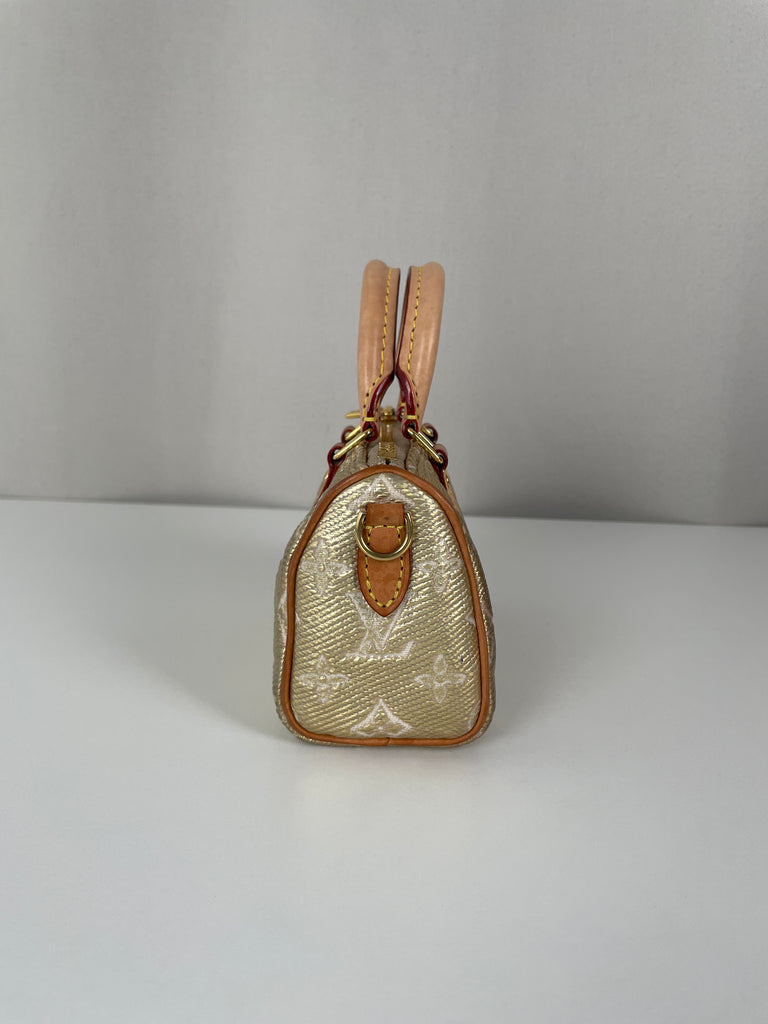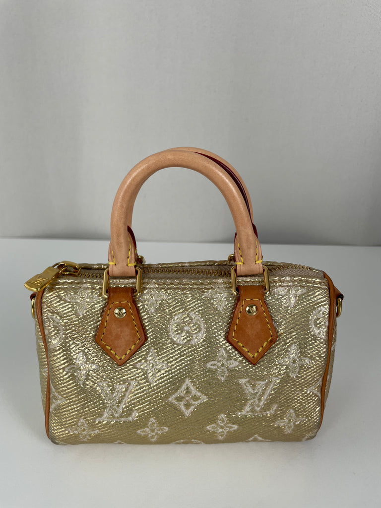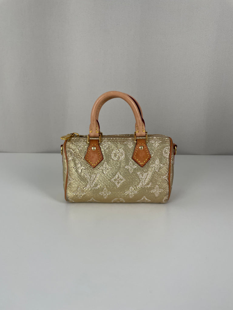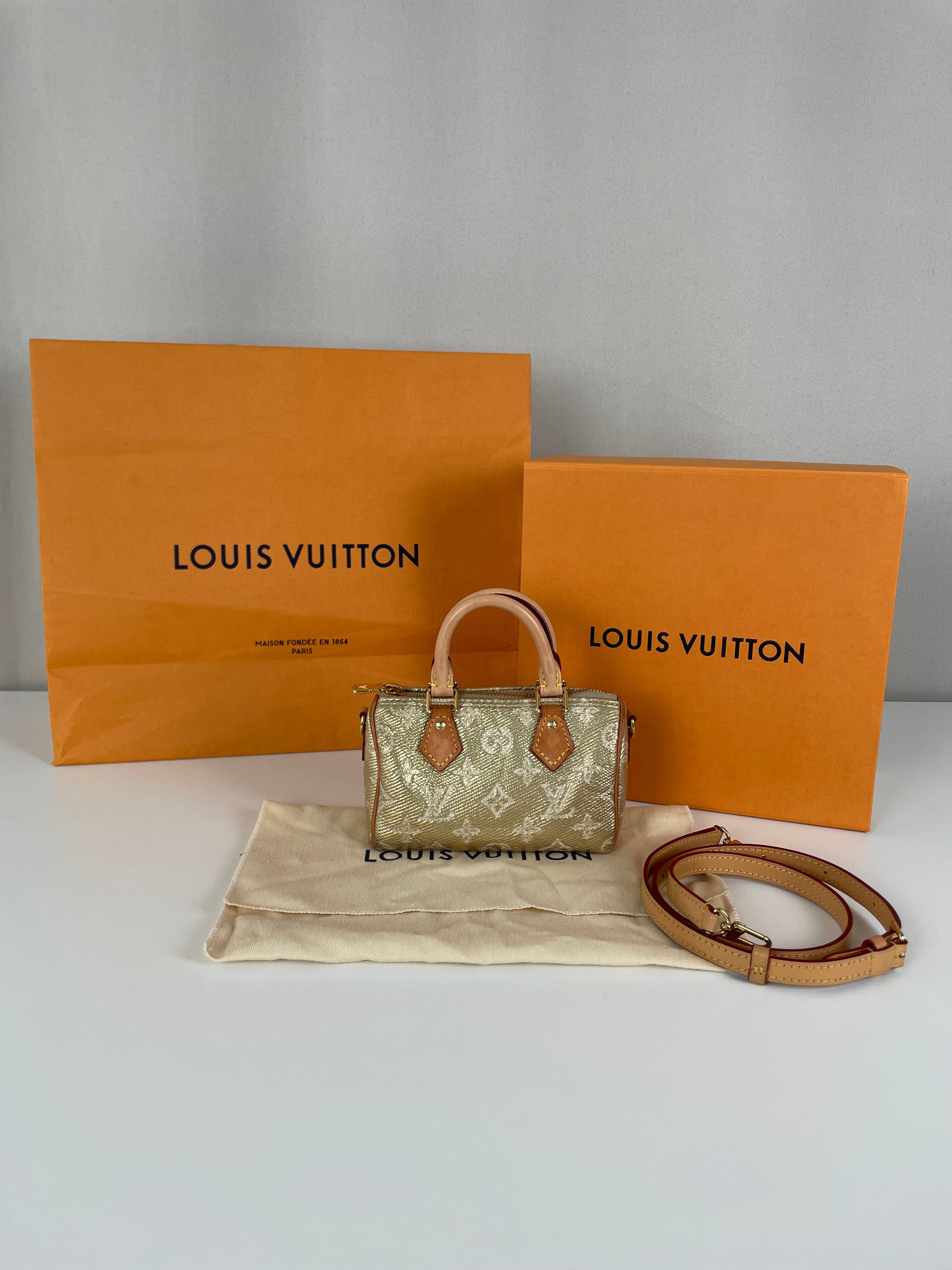 Sac Louis Vuitton Nano Speedy en cuir empreinte doré