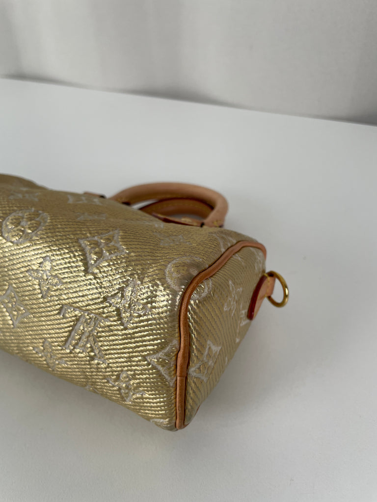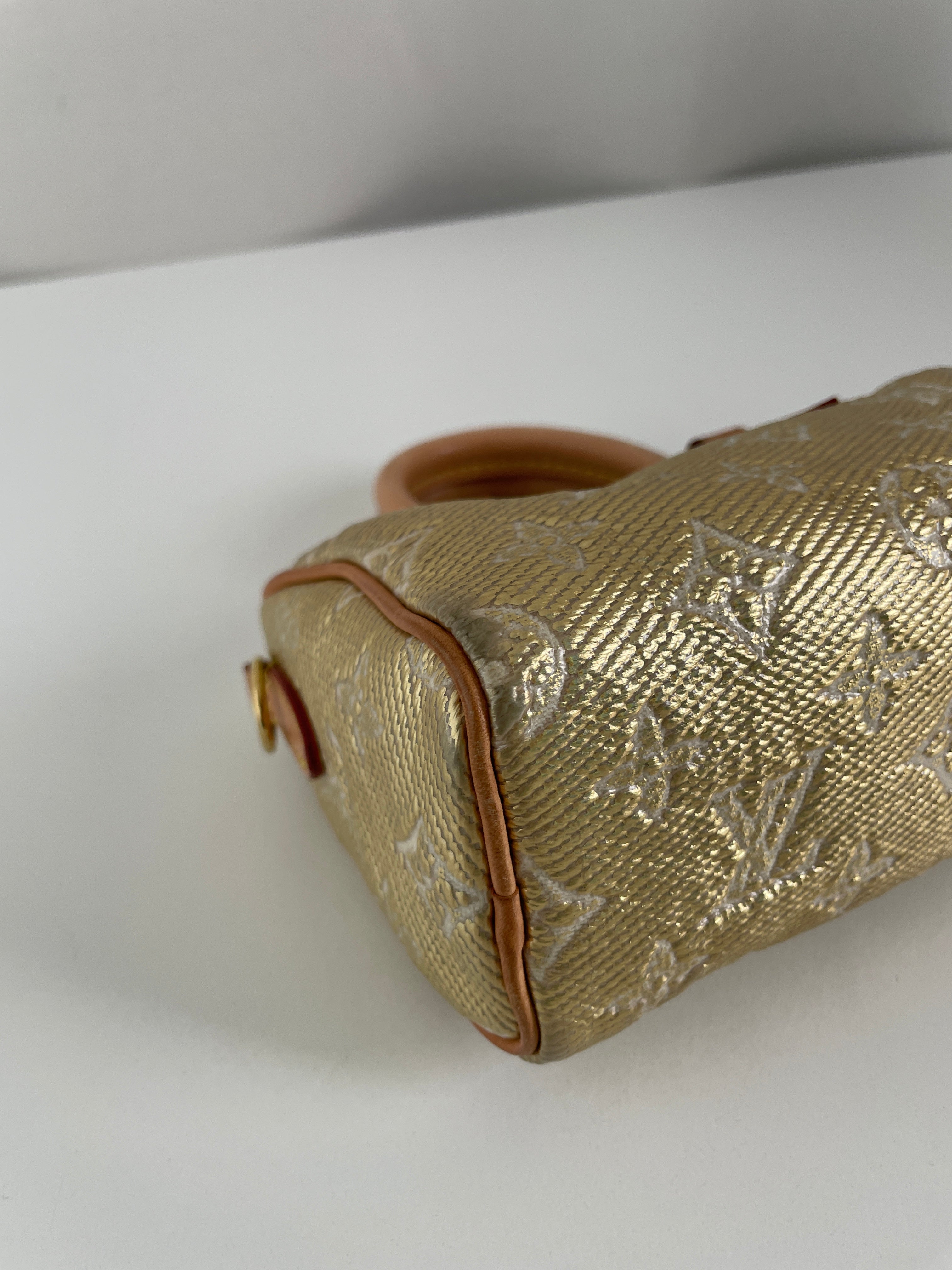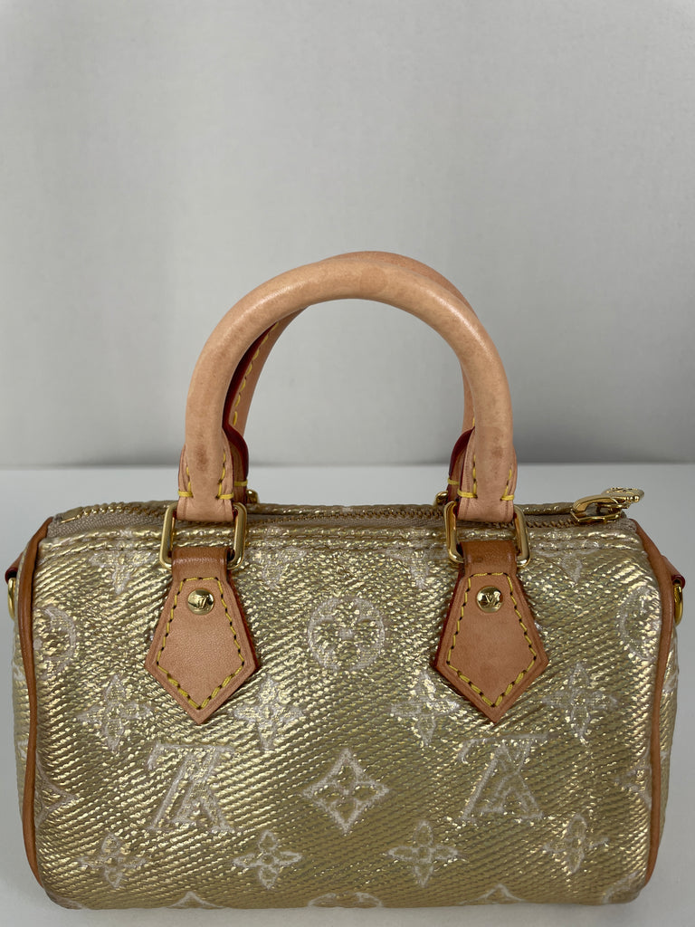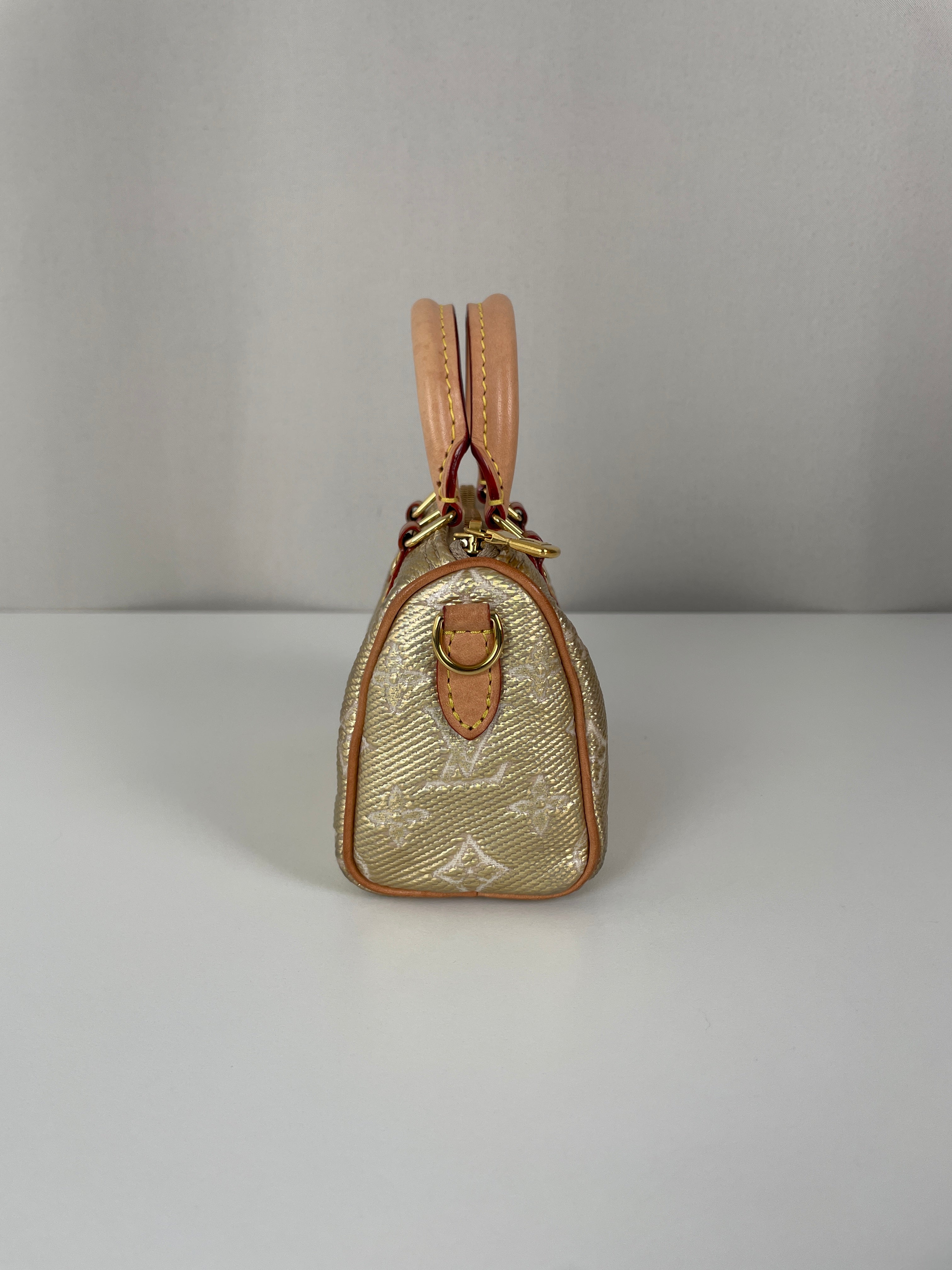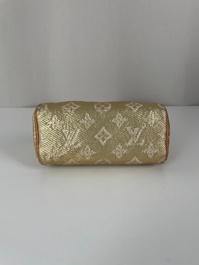 Sac Louis Vuitton Nano Speedy en cuir empreinte doré