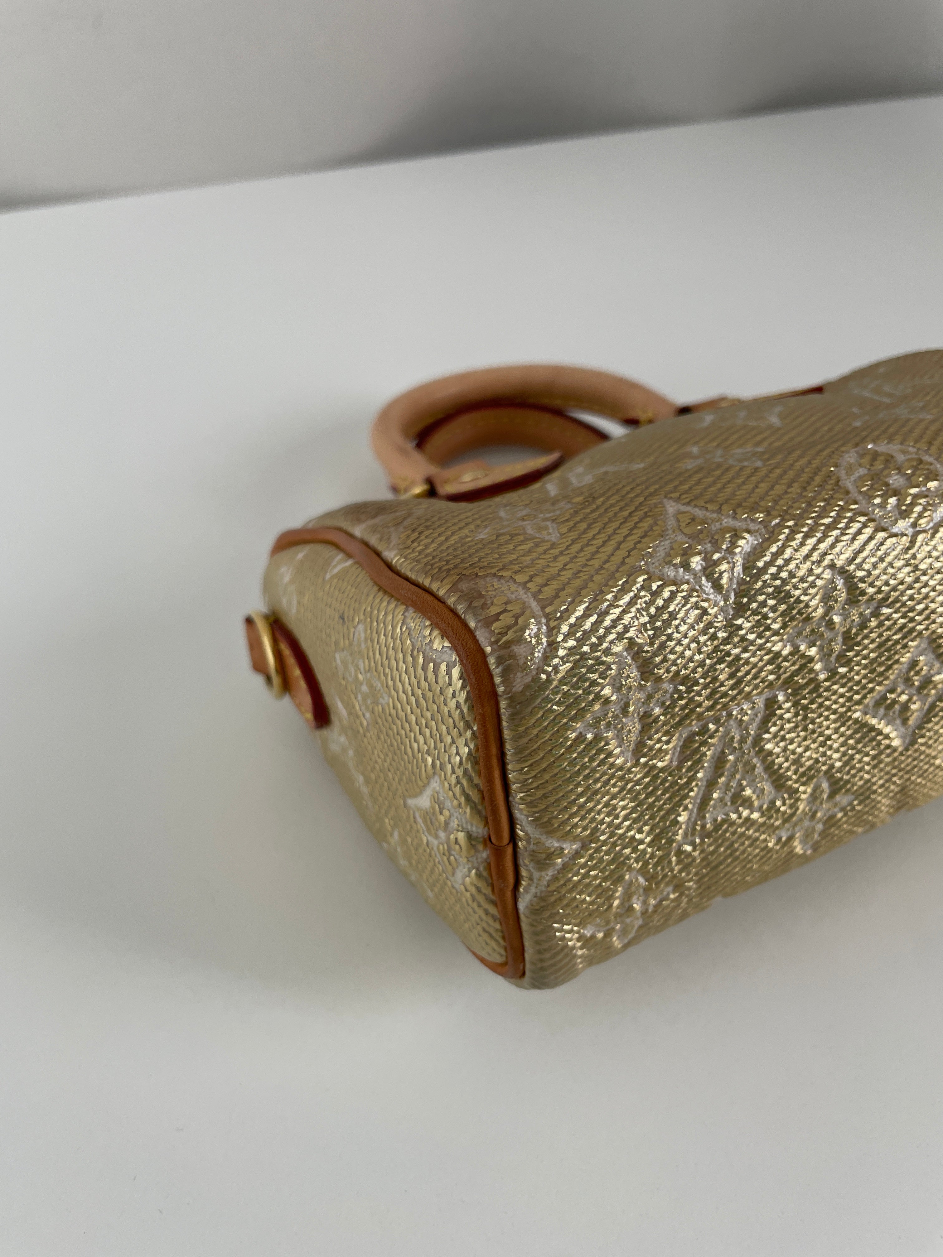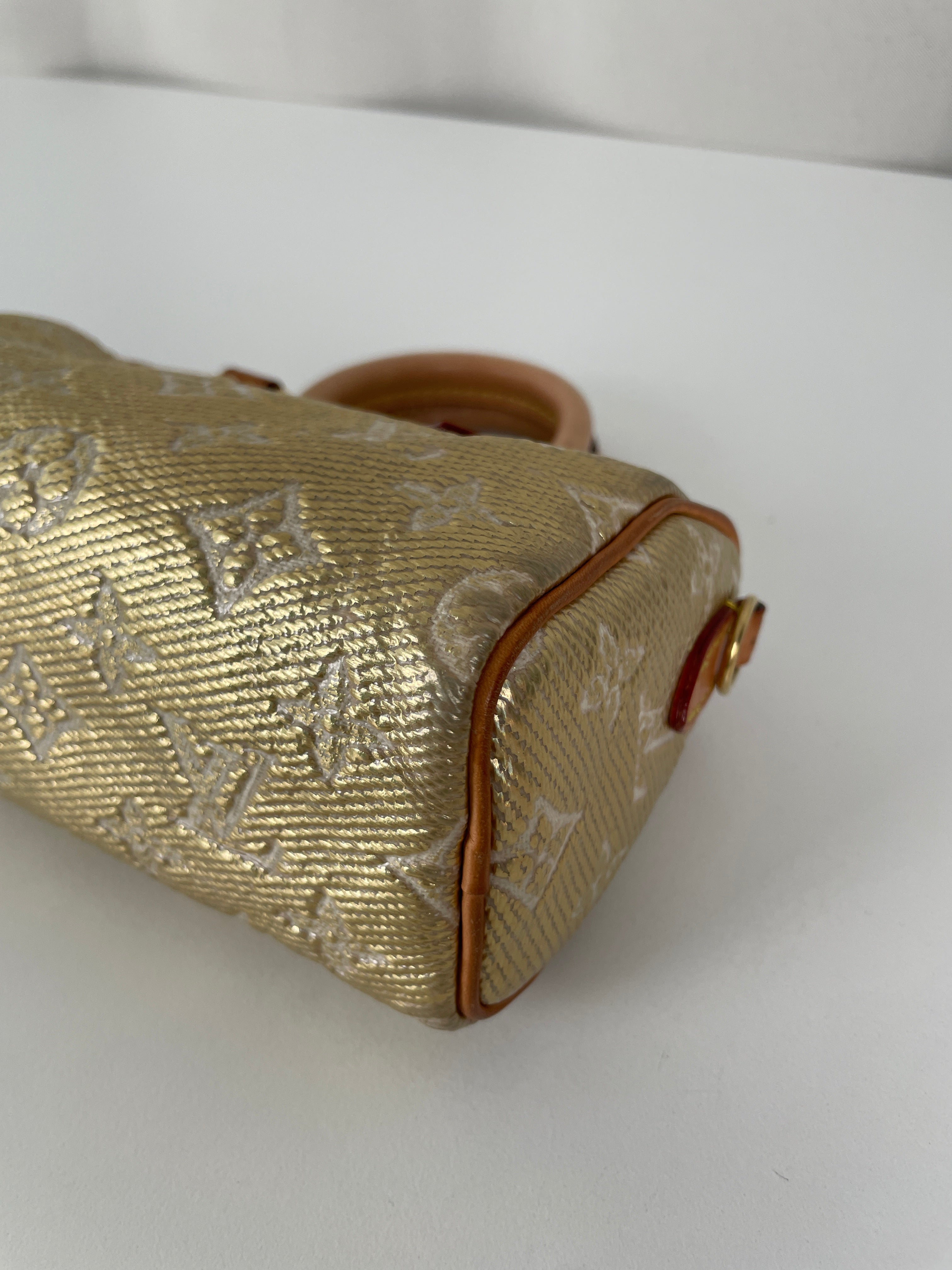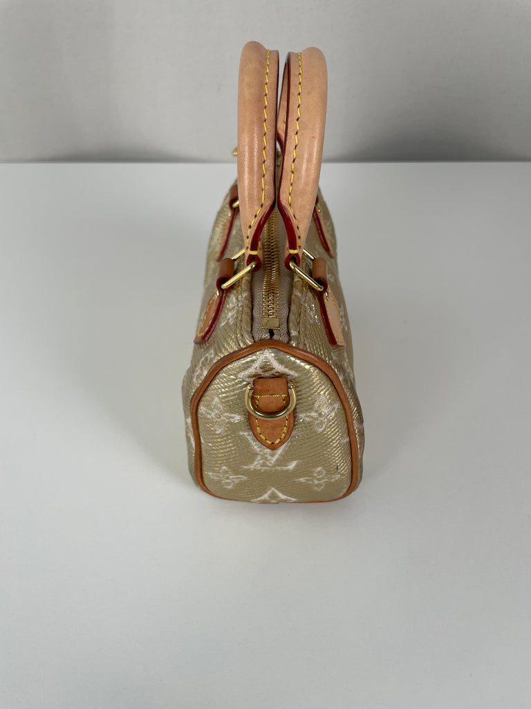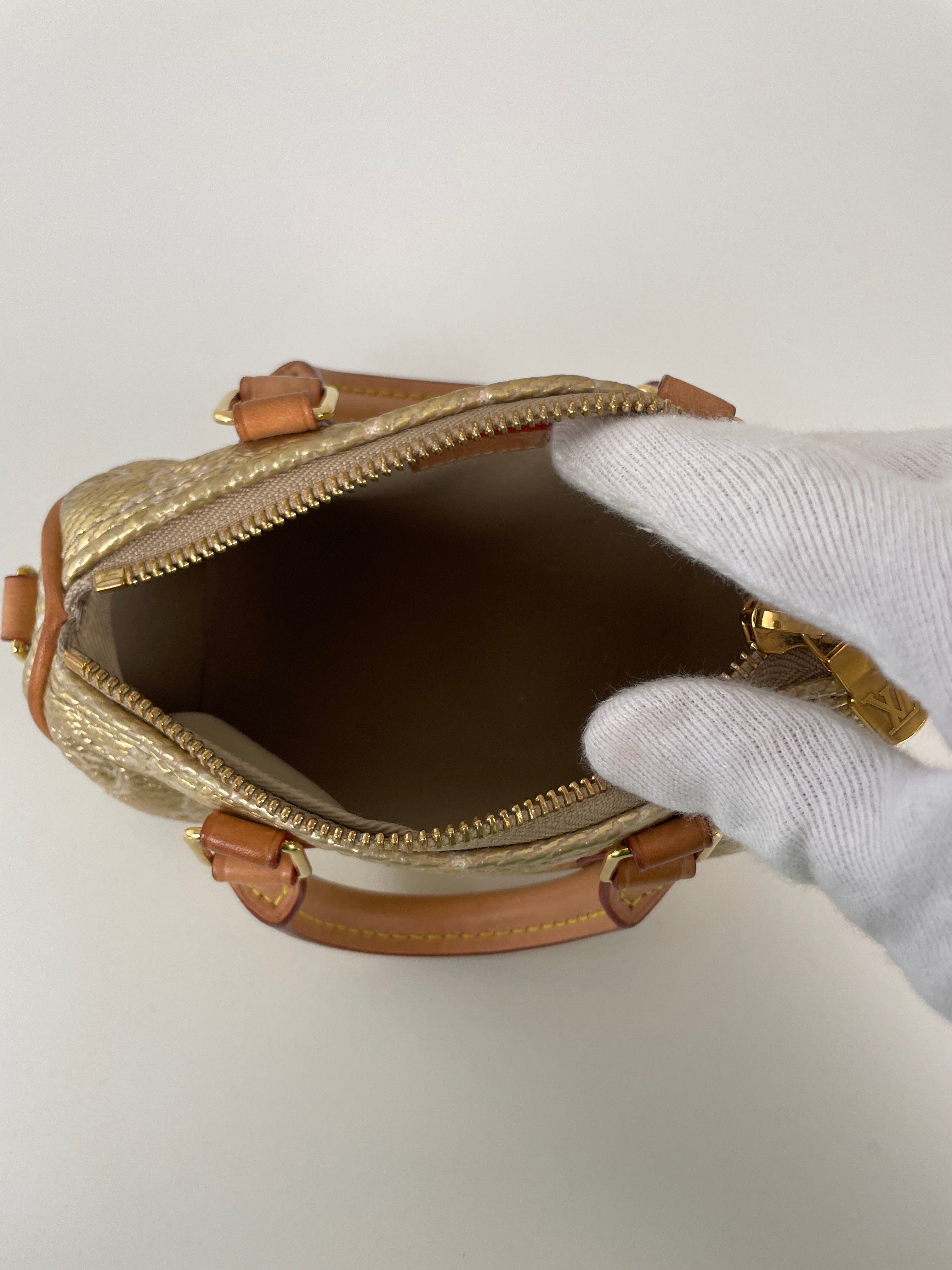 Sac Louis Vuitton Nano Speedy en cuir empreinte doré