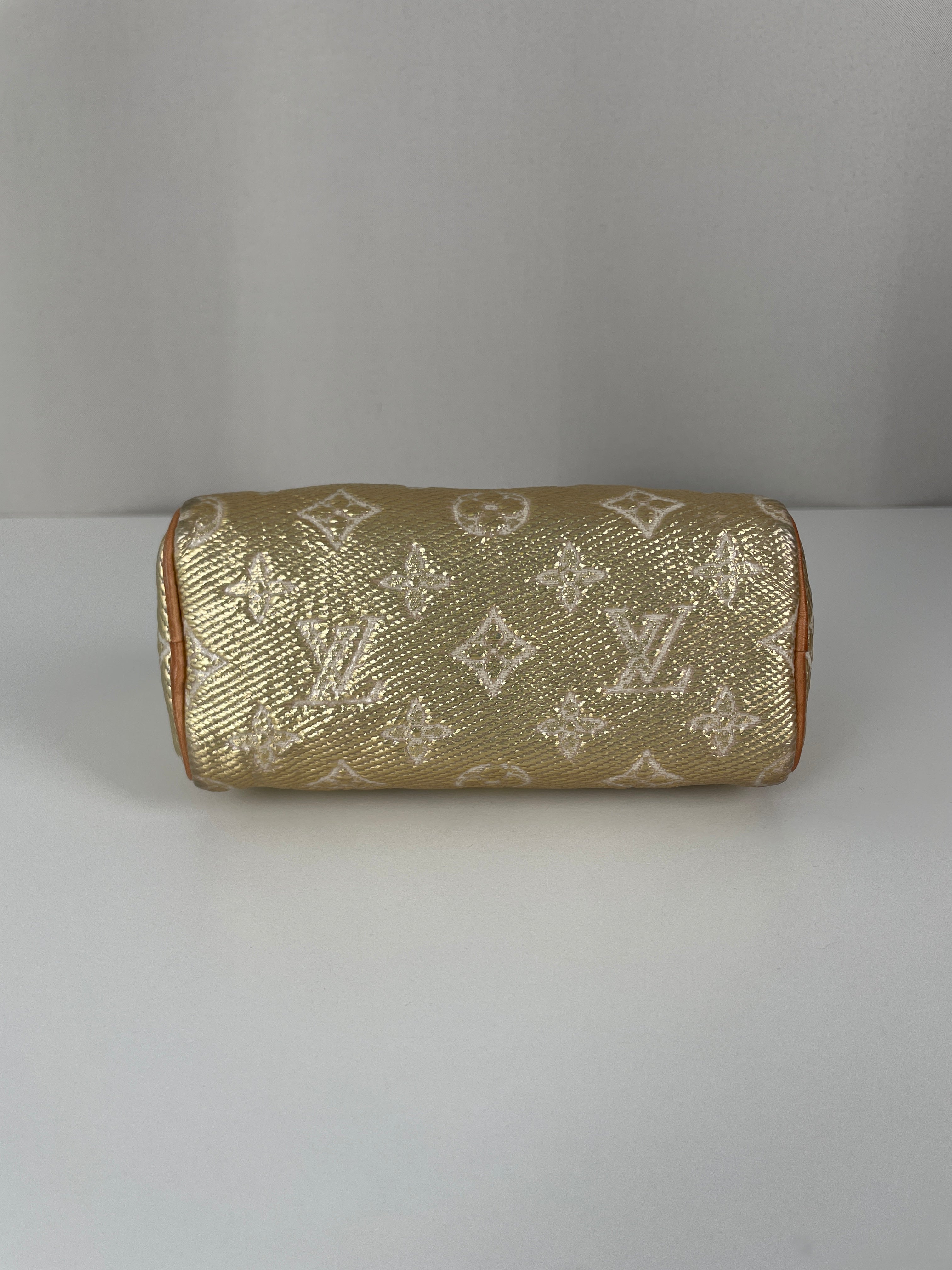 Ce Louis Vuitton Nano Speedy en cuir Empreinte doré est une pièce rare en édition limitée. Compact et très prisé, il est parfait pour transporter vos essentiels avec style. L'éclat du monogramme doré ajoute une touche glamour à cette icône miniature. Un rêve de collection aussi pratique que chic.